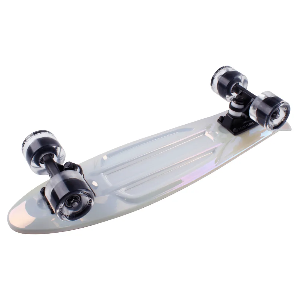 Скейтборд пластиковый Metallic 22 white – спортивная модель 2021 года, изготовленная с учетом пожеланий и требований современных пользователей. Маневренные характеристики, скорость стали преимущественными характеристиками. Купить скейтборд по приемлемой стоимости, воспользоваться преимуществами предлагает наш интернет-магазин.