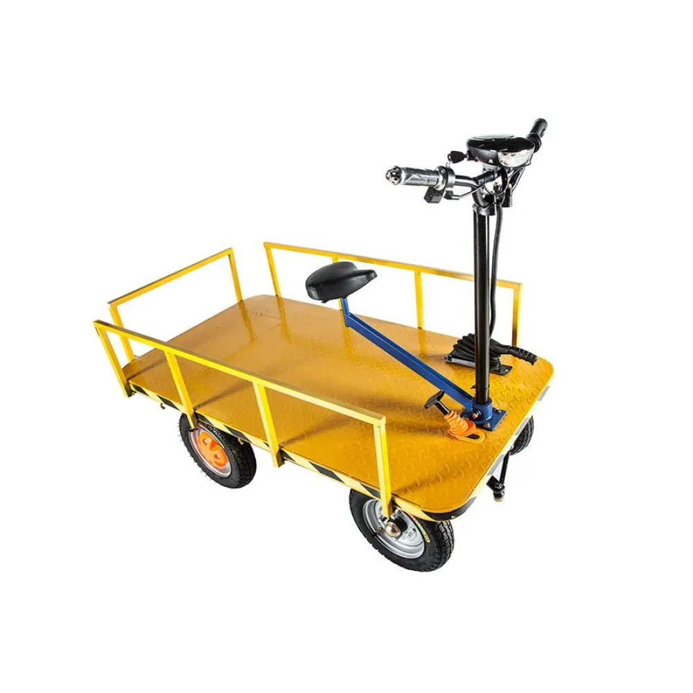 При мощности двигателя 800 ВТ техника способна развивать скорость до 25 км/час. Грузоподъемность электротранспорта составляет 750 кг. Модель оформлена порошковой краской желтого цвета, длительное время не теряющей первоначальные характеристики. Тормозная системы – качественная, барабанная. Эксплуатационные характеристики позволяют пользоваться техникой при температурных параметрах -10С до +50С. Техника изготовлена из прочной стальной рамы, которая неоднократно подтвердила максимальные параметры надежности. Для заказа товара оптом и в розницу предлагаем связаться с менеджером интернет-магазина в телефонном или онлайн-режиме.