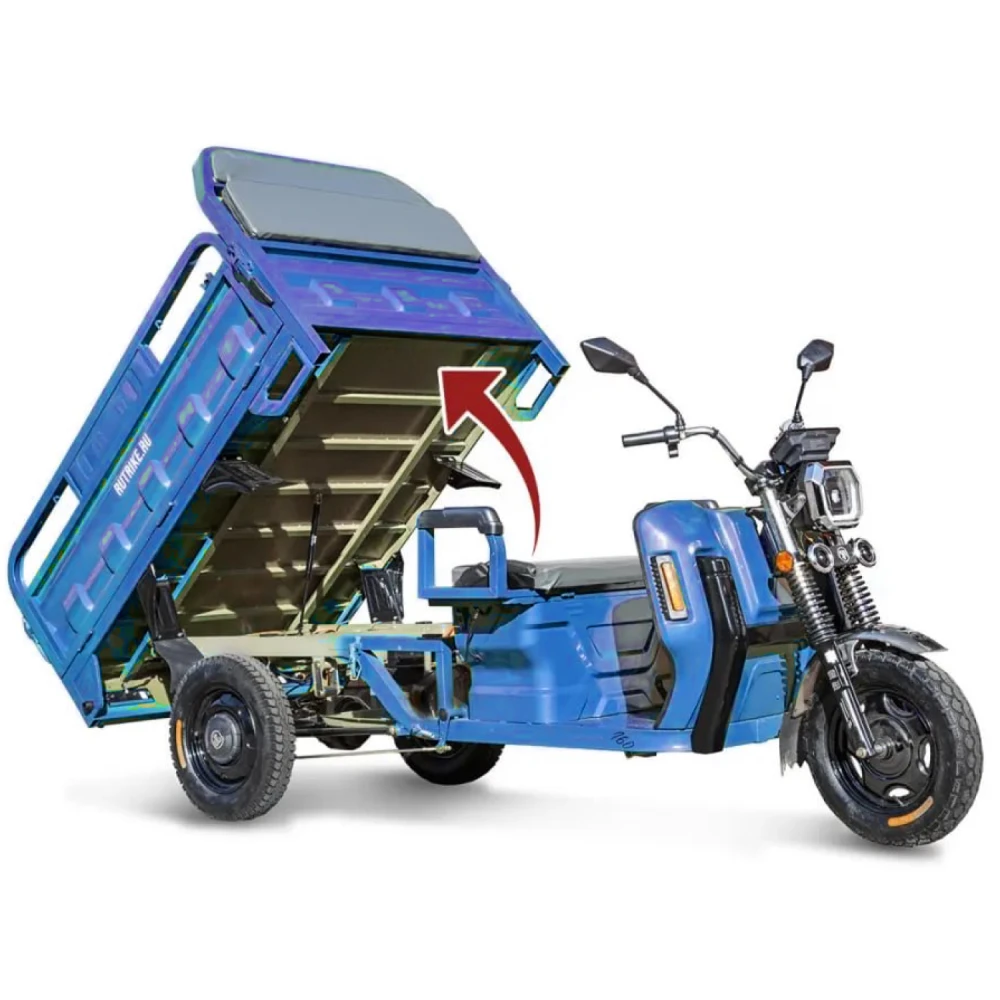Грузовой электротрицикл Rutrike Маяк 1600 60V1000W синего цвета - это оптимальное решение для тех, кто ищет эффективное средство перевозки грузов с минимальными затратами на топливо и без вредных выбросов. Независимо от того, какие грузы вам необходимо перевезти, этот электротрицикл готов справиться с задачей и обеспечить вам комфорт и уверенность на дороге.
