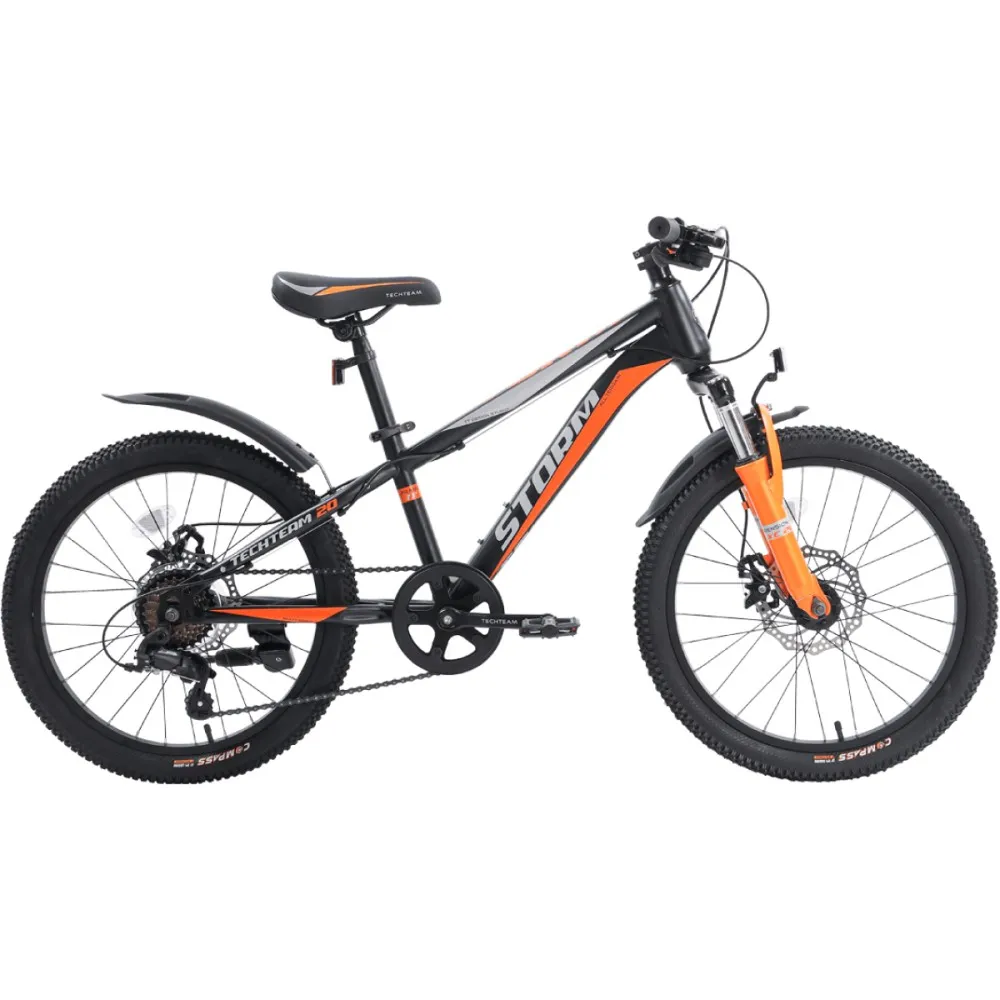 ВЕЛОСИПЕД TechTeam STORM 20" черно-оранжевого цвета – модель, рассчитанная на экстремальную езду при любых погодных и дорожных условиях. Это обеспечивается амортизационной вилкой с алюминиевыми короной и штанами, которые полностью гасят вибрацию при езде. Сочетание необычных цветов не оставит равнодушными самых капризных и требовательных пользователей. Стальная рама имеет низкую конструкцию, позволяющей эксплуатировать модель и женщинам, и мужчинам.