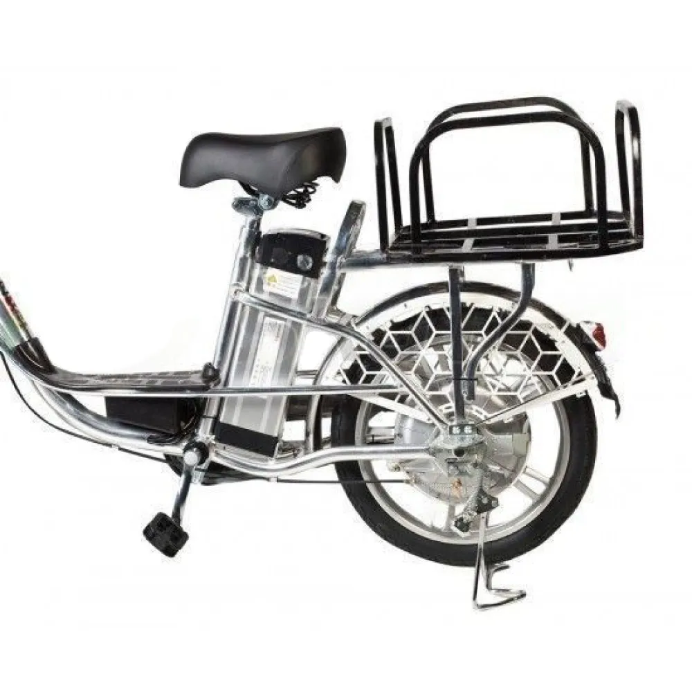 Багажник корзина для курьерских электровелосипедов в привлекательном дизайне идеально сочетается с основной техникой. Прочная надежная модель изготовлена из высококачественного, устойчивого к механическому воздействию материала.